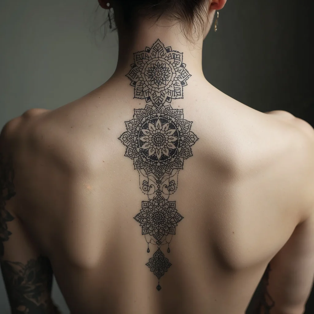 Geometric Mandala Spine Tattoo