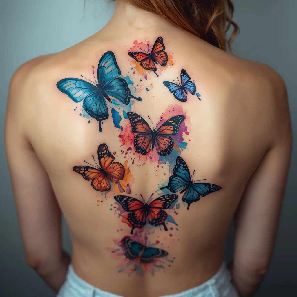 I’ve seen people combine multiple butterflies in different stages of flight, creating this gorgeous cascade effect down the back. Others prefer one massive butterfly with wings spanning shoulder to shoulder. Both approaches work brilliantly.