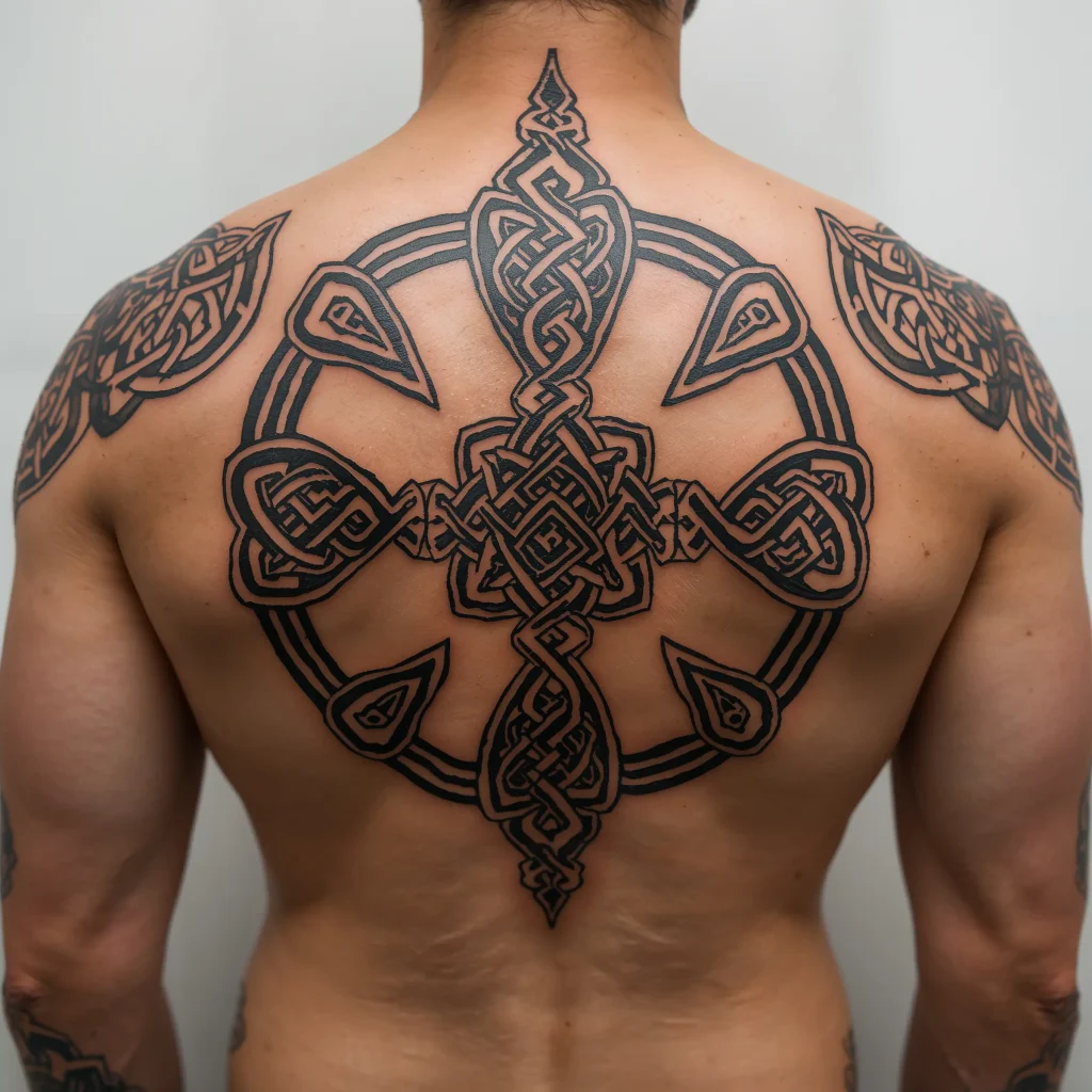 Celtic knots bring this hypnotic quality that makes you want to trace every line with your eyes. These interconnected patterns have no beginning or end, symbolizing eternity, loyalty, and faith. Spreading them across your entire back creates this mesmerizing tapestry effect.