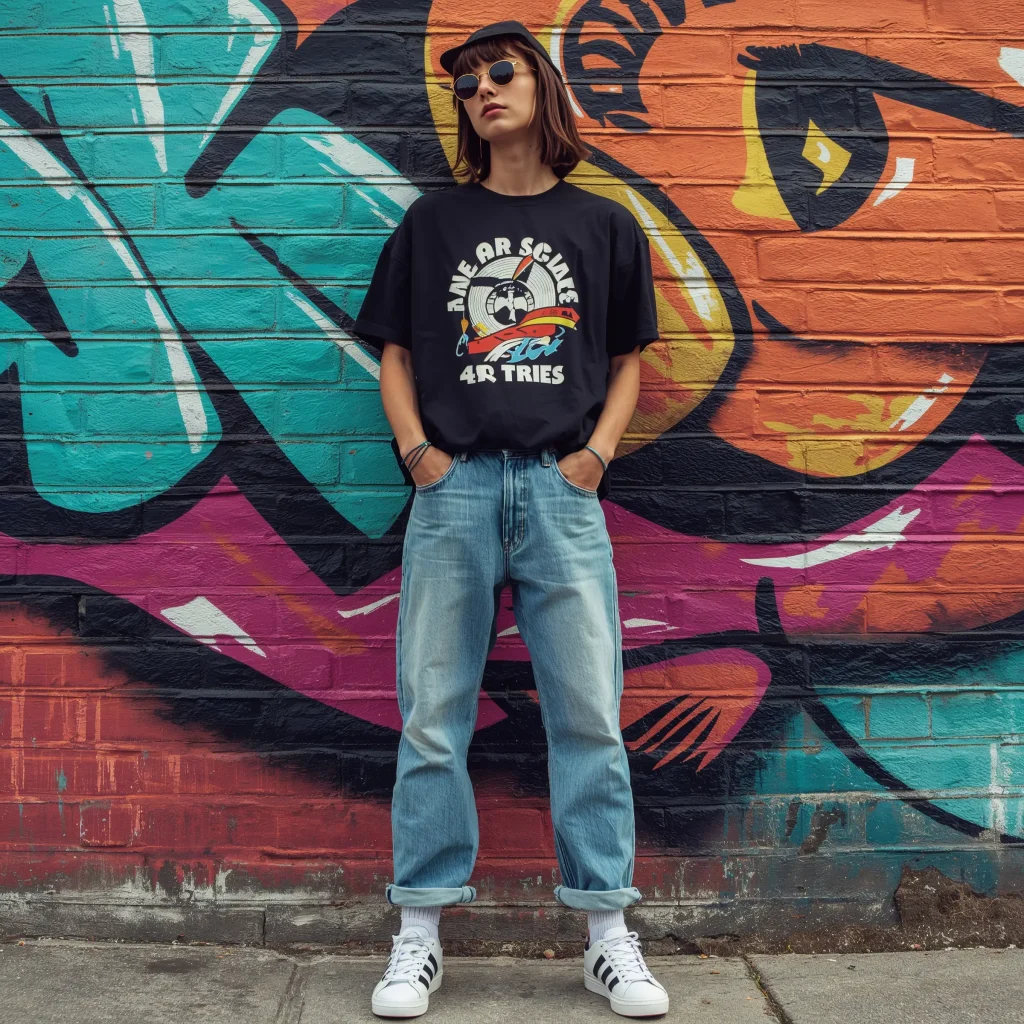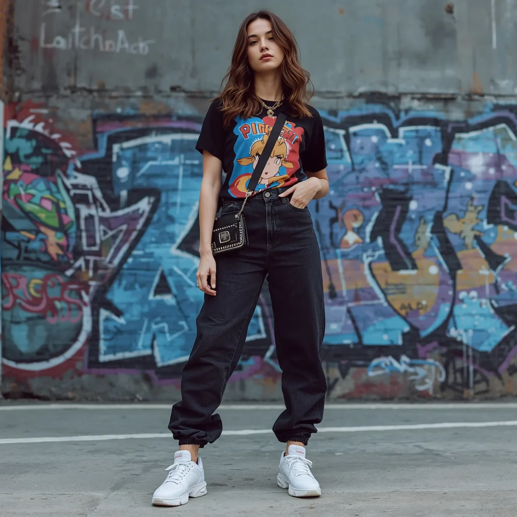 Vintage-Inspired Baggy Jeans with Retro Tee