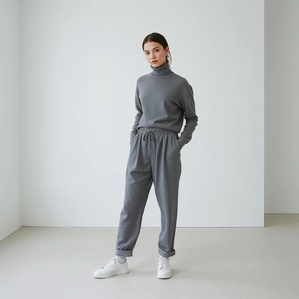 Last but not least, the ultimate comfort combination. This outfit bridges the gap between pajamas and actual clothes, making it perfect for working from home or lazy weekends.