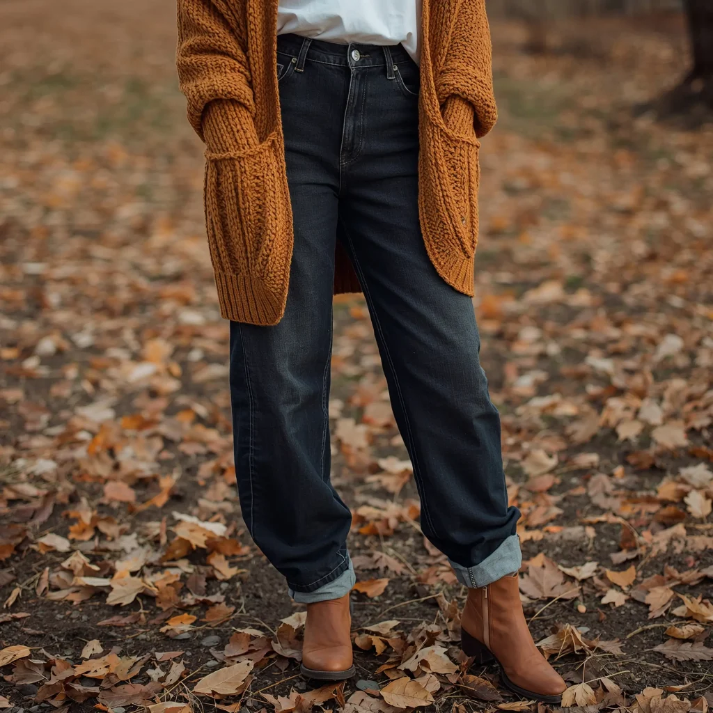 Cozy Autumn Baggy Jeans with Knit Cardigan