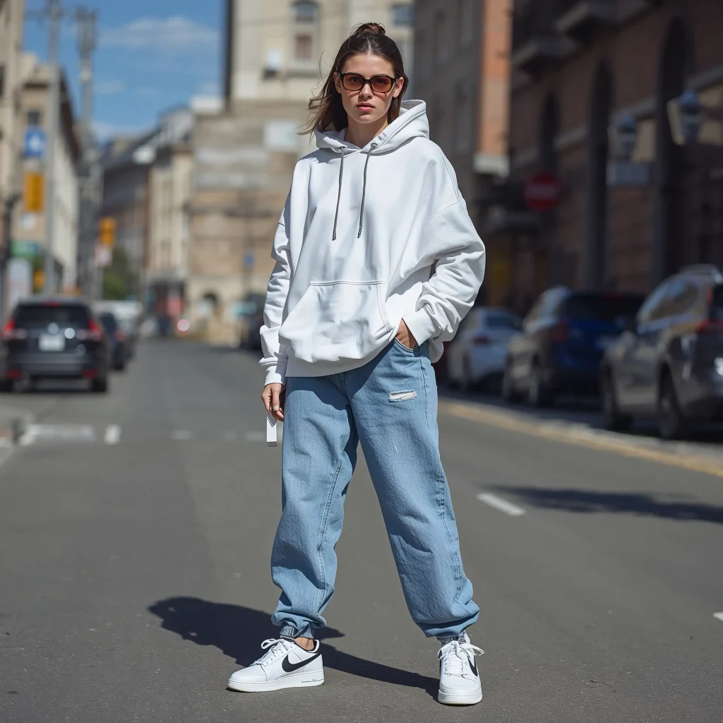 Sporty Baggy Jeans with Hoodie and Sneakers