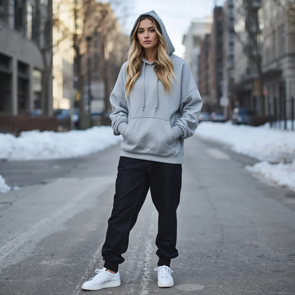Layer your hoodie under a structured jacket or coat for instant elevation. My go-to move? An oversized hoodie under a leather jacket with baggy jeans and fresh kicks. It’s that perfect high-low mix that makes street style so interesting.