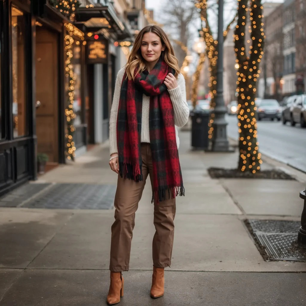The scarf becomes your statement piece here. Go for oversized blanket scarves that you can wrap multiple ways. They add texture, warmth, and that cozy factor that makes winter styling actually enjoyable.