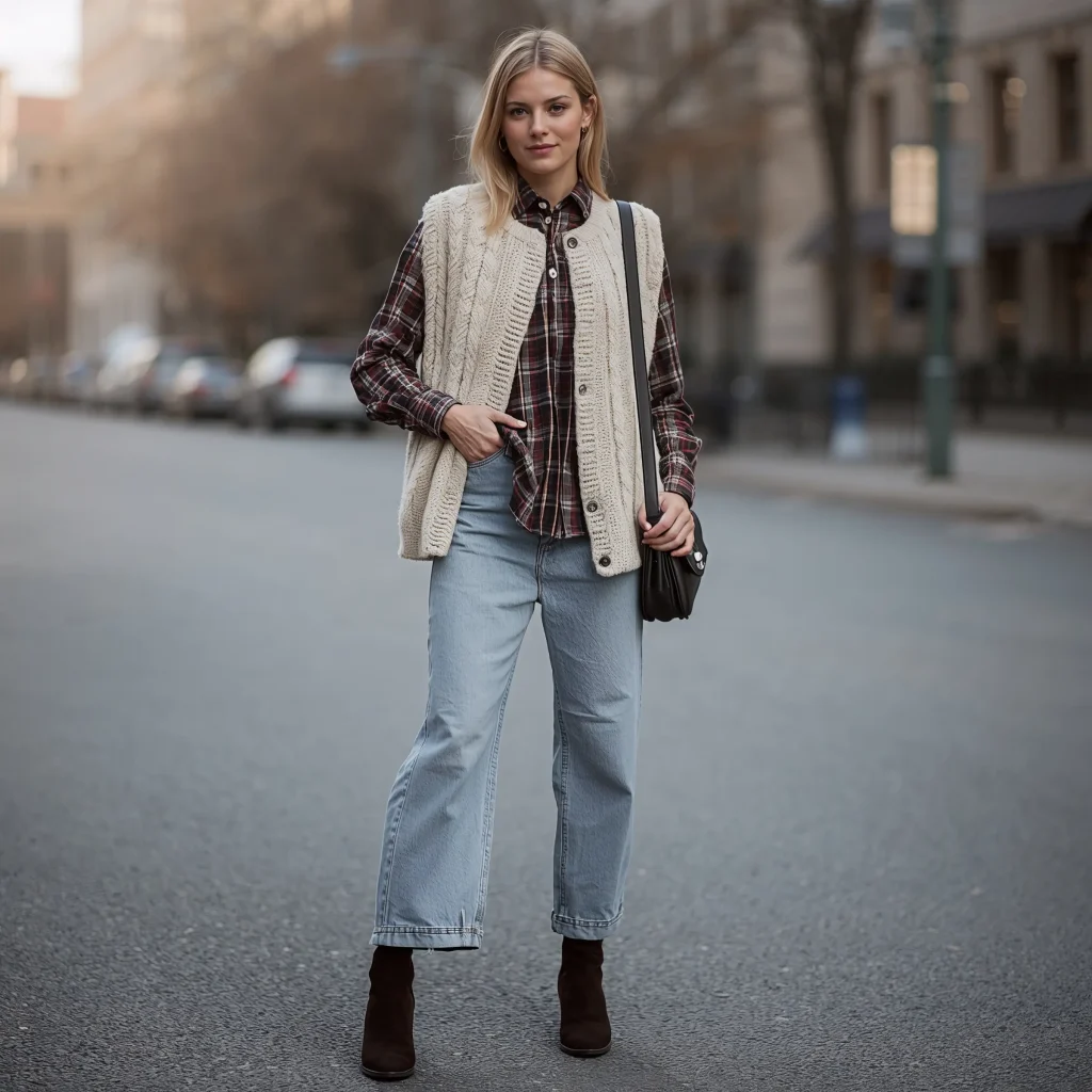 Remember when we all thought vests were just for golf dads? Yeah, fashion had other plans. Knit vests over oversized shirts with baggy jeans create this preppy-meets-street aesthetic that’s surprisingly fresh.