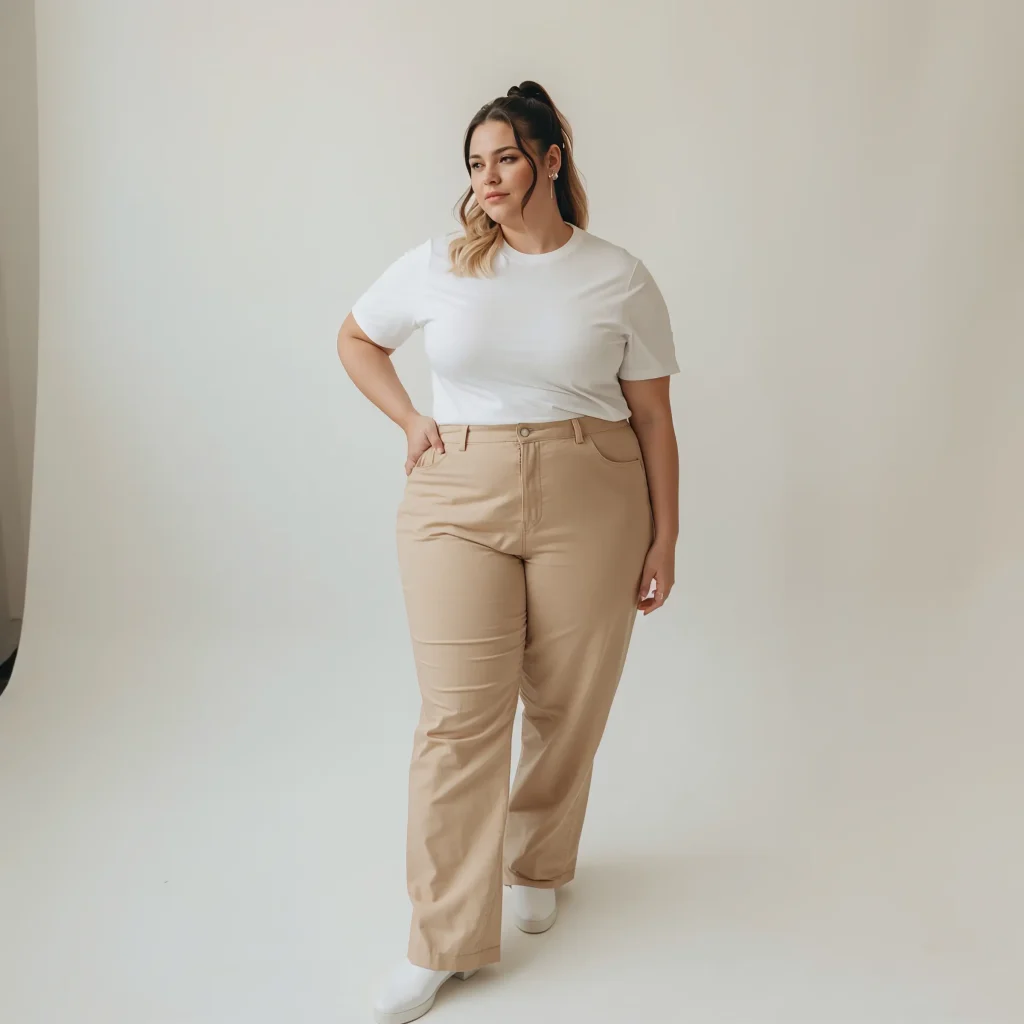 Start with a fitted bodysuit or tucked-in basic tee – I swear by bodysuits because they stay put and create that perfect smooth silhouette. The contrast between the fitted top and baggy bottom creates visual balance that flatters every curve. Throw on some white sneakers (I’m obsessed with platform ones right now), and you’ve got yourself an outfit that works for coffee runs, casual Fridays, or weekend brunches.
