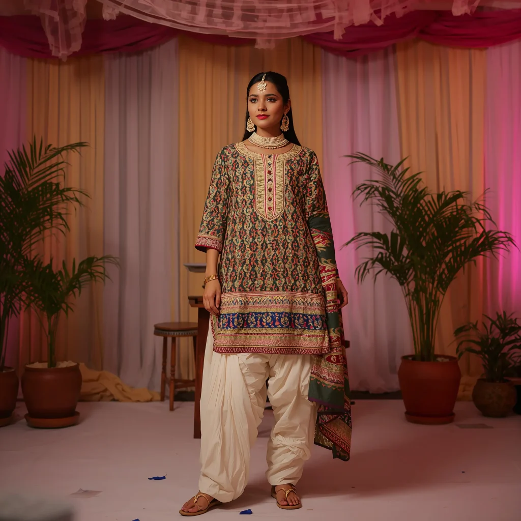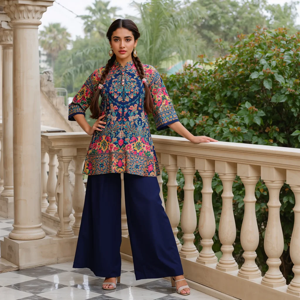 I particularly love geometric or floral prints on the kurti while keeping the palazzo bottoms in a solid, complementary color. The contrast creates visual interest without overwhelming your frame. Plus, palazzos give you that swoosh-swoosh feeling when you walk – admit it, you love that too!