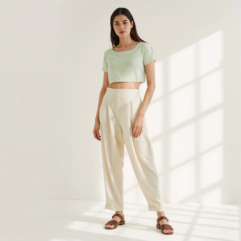 Crop-Style Kurti with Soft Linen Baggy Pants