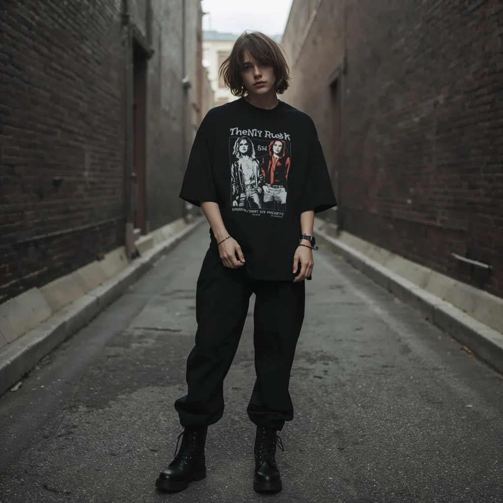 Hunt for authentic vintage tees at thrift stores or online – the more worn-in, the better. My personal favorite is a faded Nirvana tee I found for $3 at Goodwill. The authenticity adds character you just can’t fake with new merchandise.