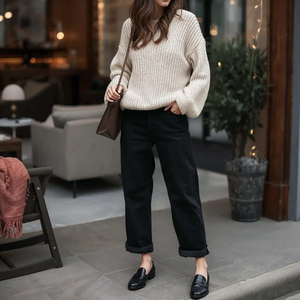 Sometimes you want to look put-together without sacrificing comfort. Enter the knit sweater and loafers combo – it’s like wearing pajamas but make it fashion. This outfit literally feels like a hug, and who doesn’t need more of those?