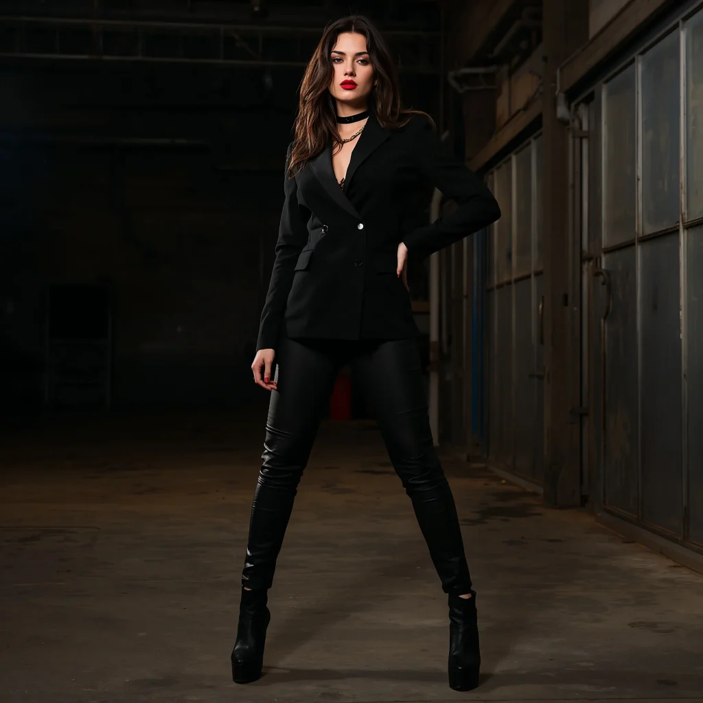 Edgy Leather Pants and Black Blazer Style