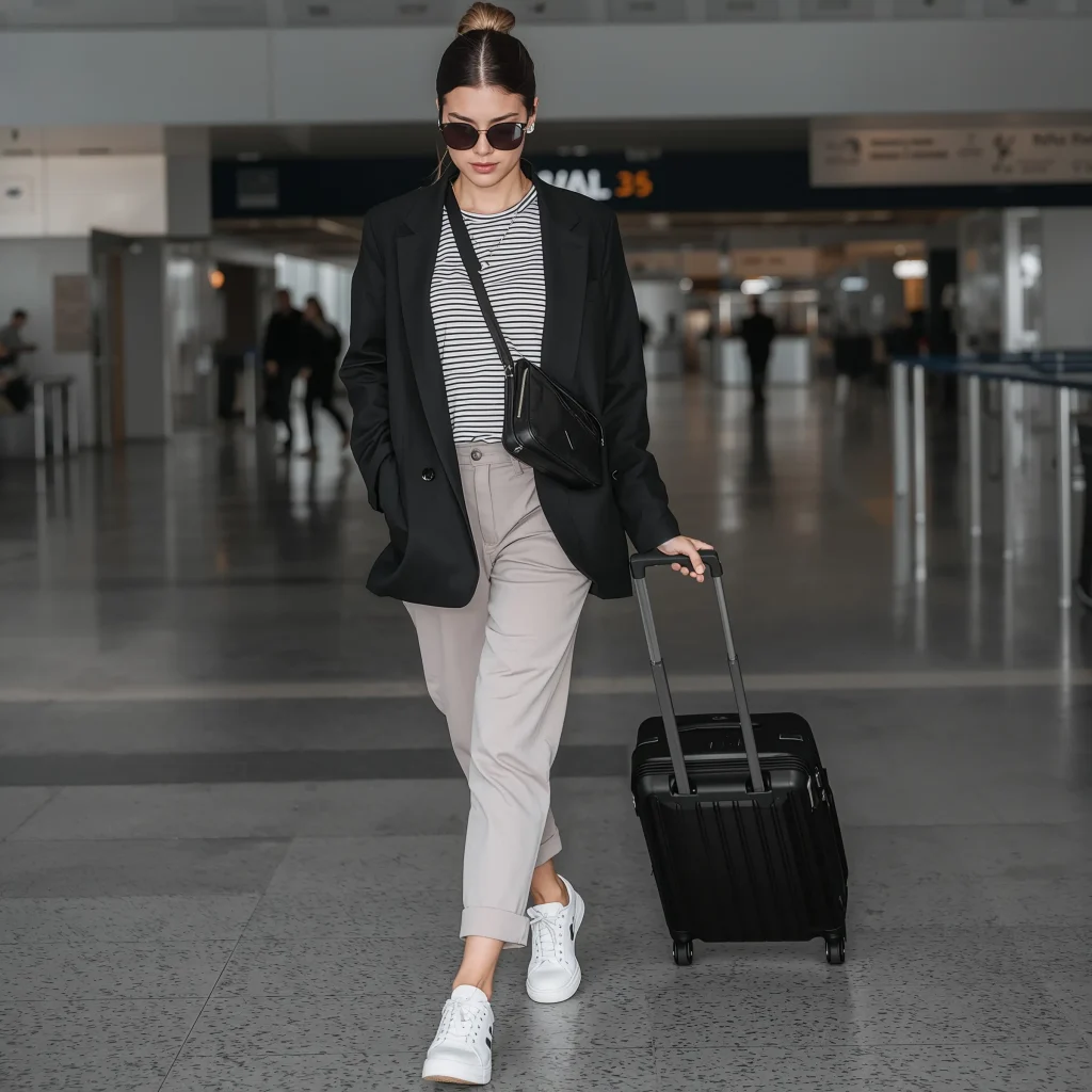 Effortless Travel Outfit with Black Blazer
