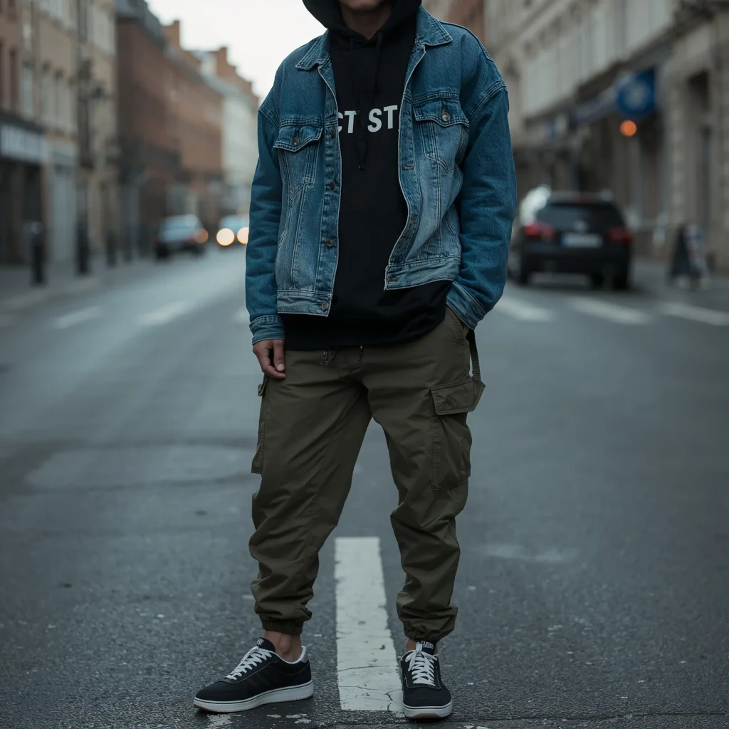 The key to mastering this look lies in the details. Start with an oversized black hoodie – and I mean properly oversized, not just your regular size that shrunk in the wash. Pair it with cargo pants that actually fit well around the waist but have that relaxed drop through the legs.