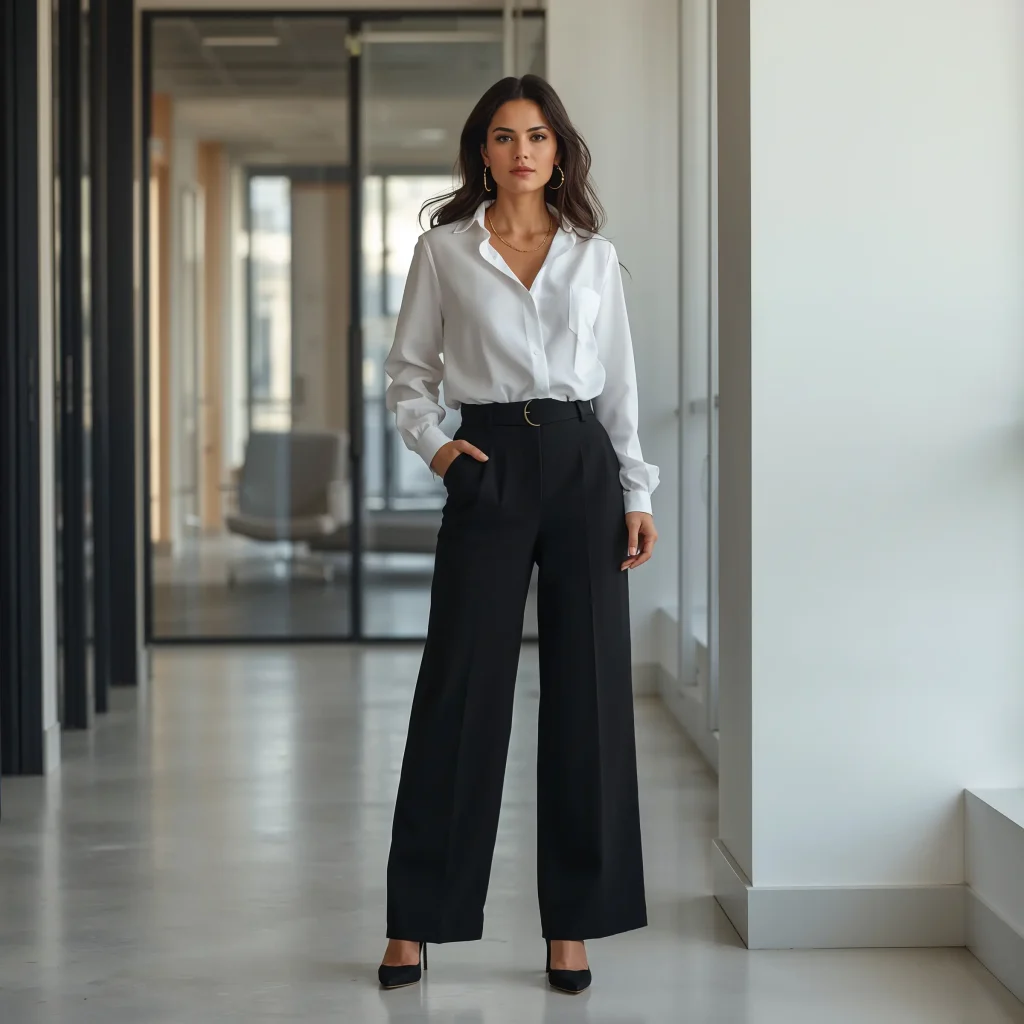 Nothing says “I mean business” quite like black wide leg pants paired with a crisp white button-down. But here’s where most people get it wrong – they stop there. The magic happens when you add the right finishing touches.
