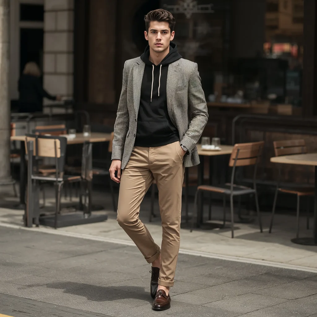 Who says hoodies can’t do business casual? Well, lots of people actually, but hear me out. This outfit walks that fine line between professional and relaxed, perfect for creative offices or casual Fridays.