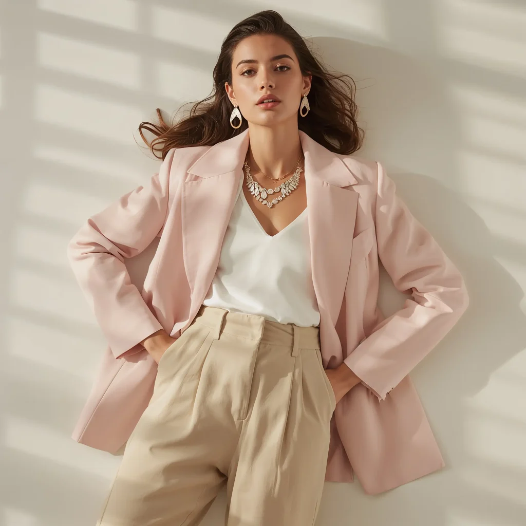I fought against pastels for years, convinced they’d make me look like a walking baby shower. Then I tried a dusty rose blazer with cream trousers, and suddenly understood the hype. It’s feminine without being precious, soft without being weak.