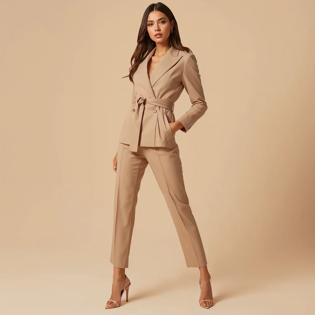 Accessories should support, not compete. Nude shoes elongate your legs without adding another color to consider. A neutral bag keeps things grounded. Let your blazer be the star – everything else is just the supporting cast.