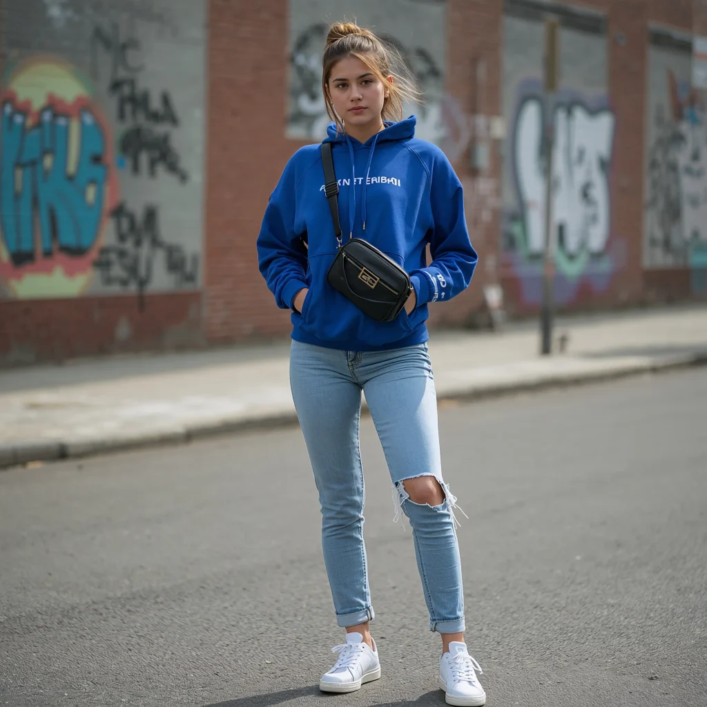 This combo never fails. I mean, who doesn’t love the classic denim-on-denim look when you do it right? Pair your blue hoodie with light-wash jeans for that perfect contrast that streetwear enthusiasts obsess over.