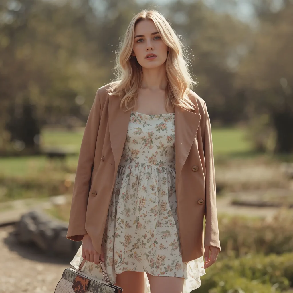 This combination literally changed my perspective on blazers. Throwing a structured brown blazer over a flowy floral dress creates this amazing juxtaposition that’s both romantic and modern. Ever wondered why French women always look so effortlessly chic? This is literally their secret.