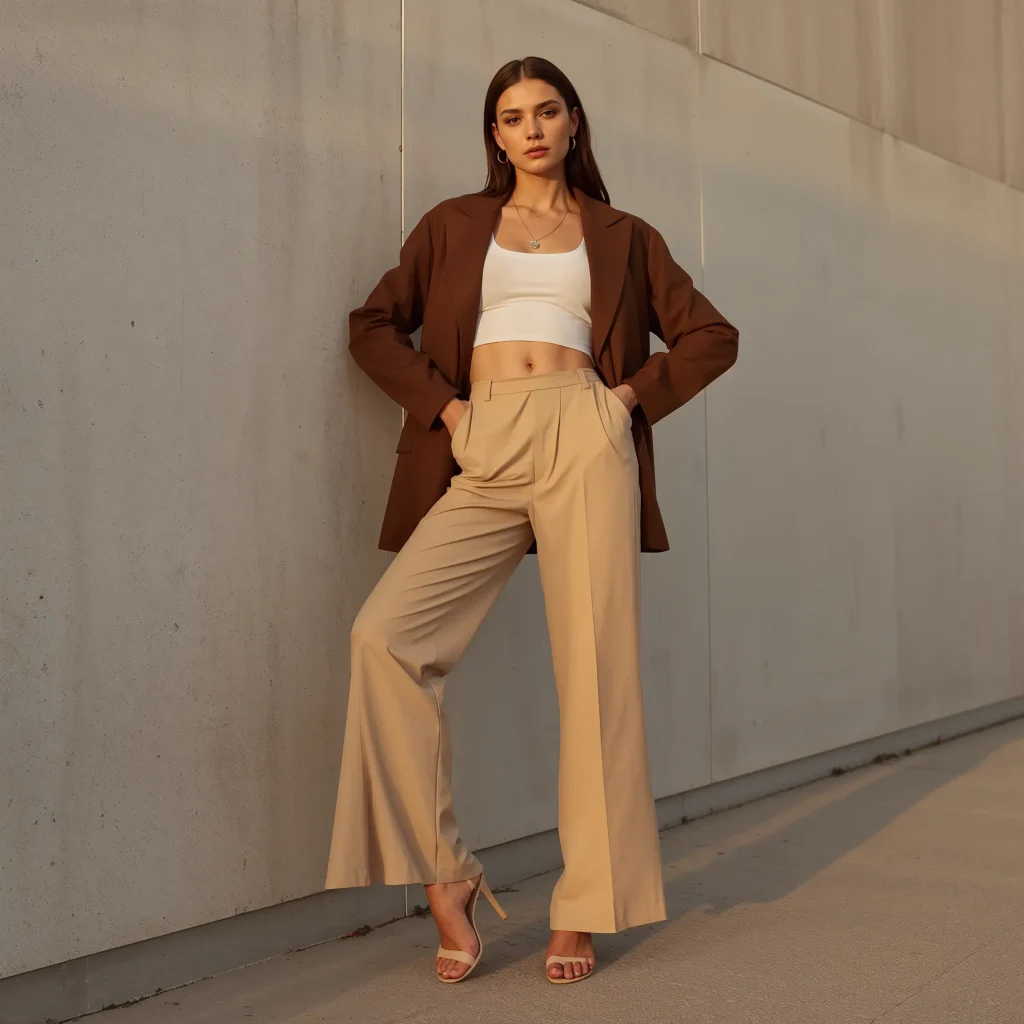 Start with brown trousers (wide-leg ones make you look taller, just saying), add a lighter or darker brown top, and finish with your brown blazer. The trick is playing with different shades and textures. Maybe your pants are a rich chocolate brown, your top is caramel, and your blazer sits somewhere in between.