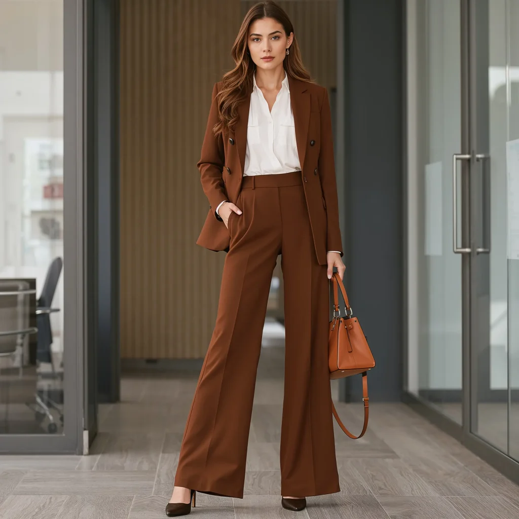 2. Office Ready Brown Wide Leg Pants with Blazer