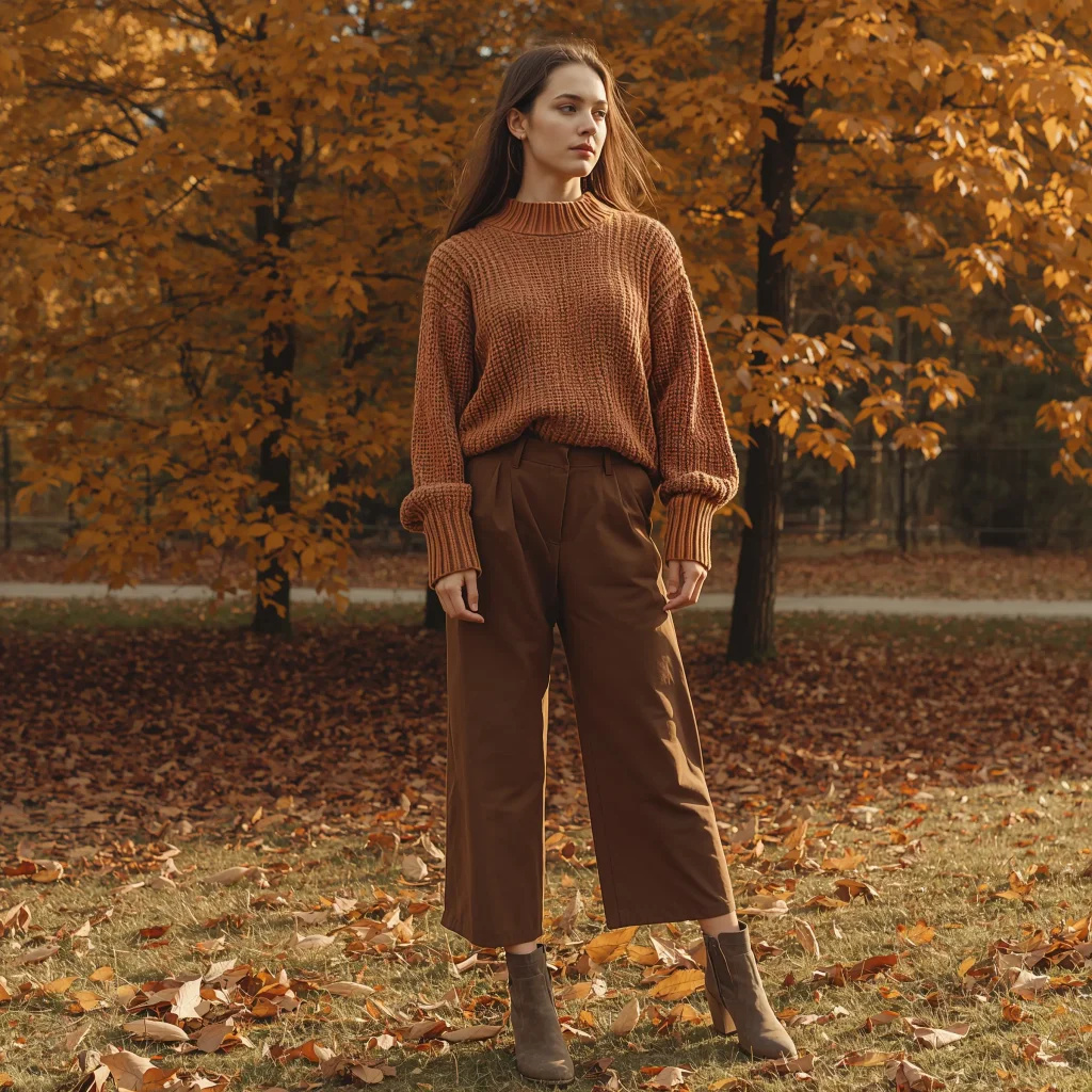 4. Cozy Fall Brown Wide Leg Pants with Chunky Sweater