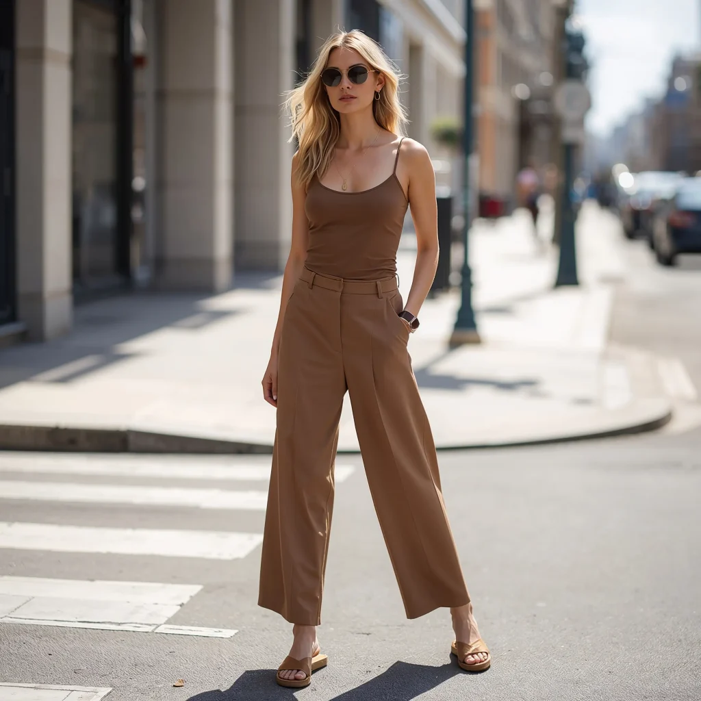 Whoever decided brown was only for fall clearly never tried pairing brown wide leg pants with a breezy tank top. This combination screams summer sophistication while keeping you cool when the temperature rises.