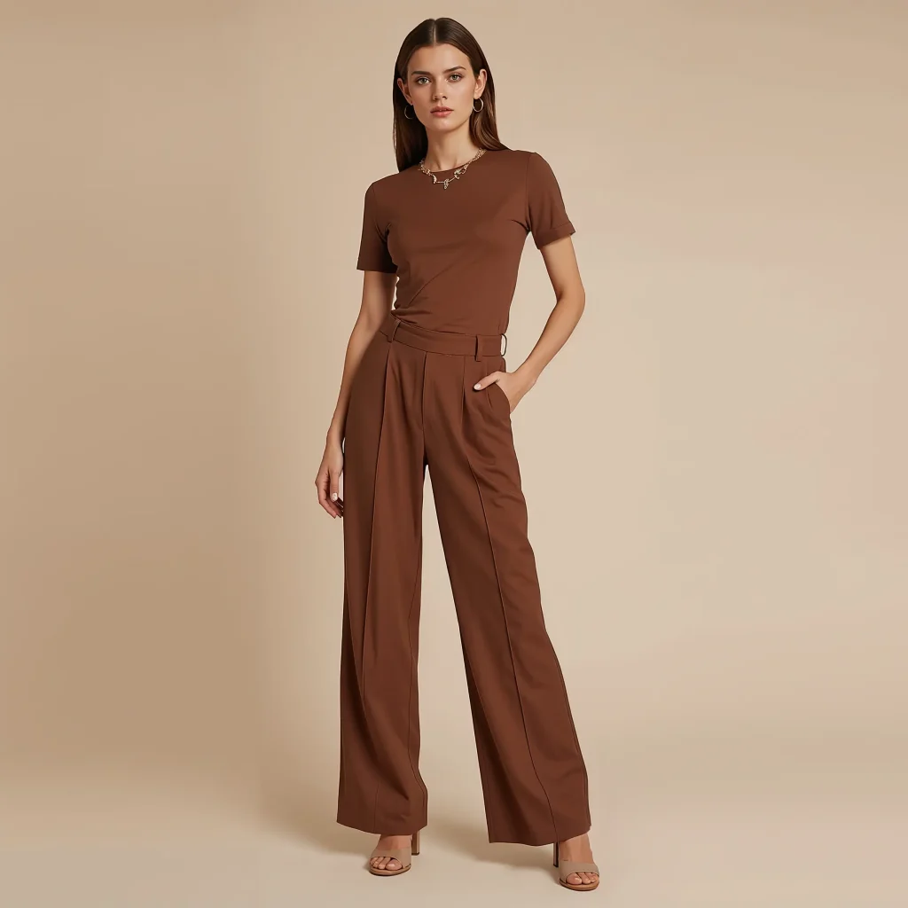 9. Monochrome Brown Wide Leg Pants with Matching Top