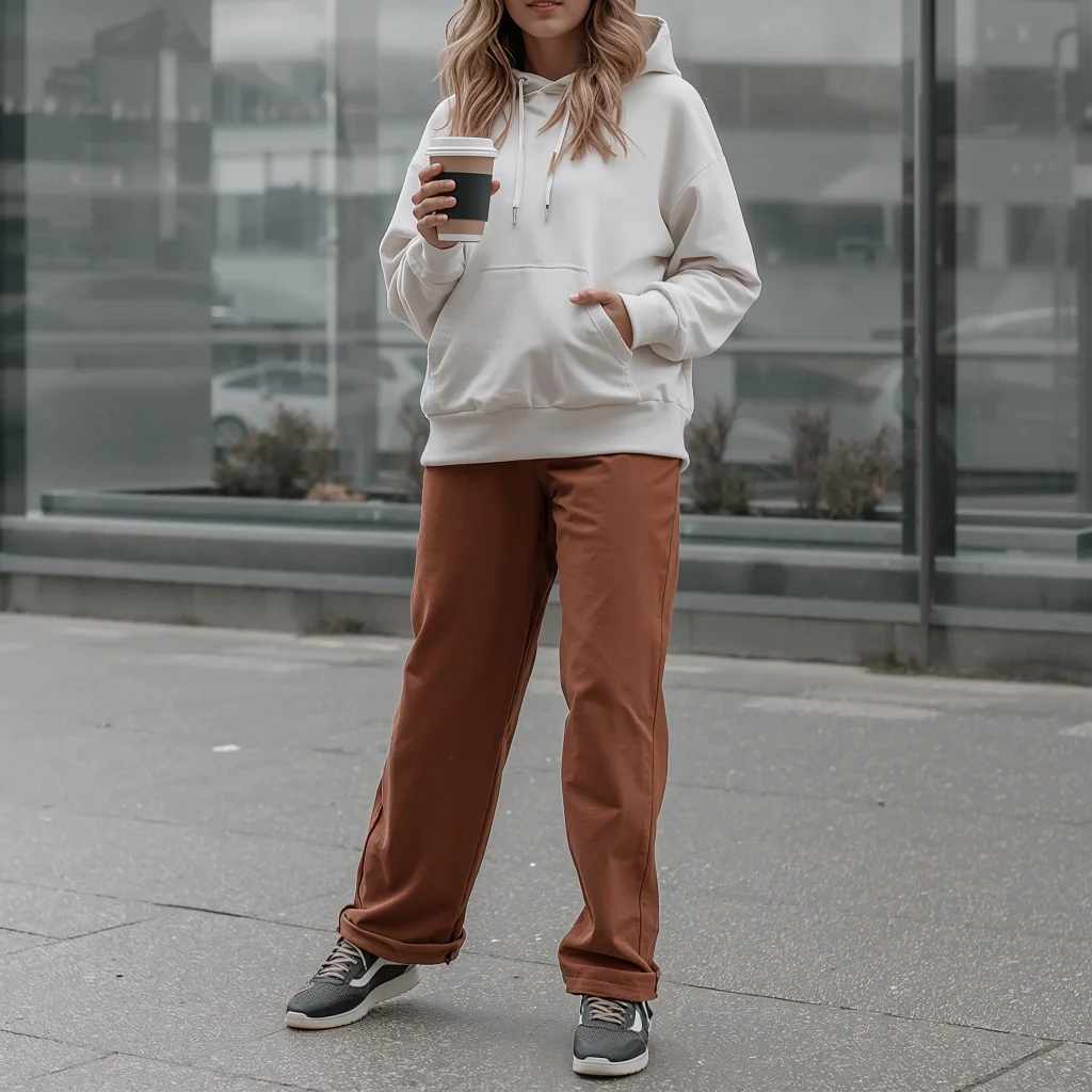 Here’s the thing – comfort and style don’t have to be enemies. Brown wide leg pants with a hoodie proves you can look put-together while feeling like you’re wearing pajamas.