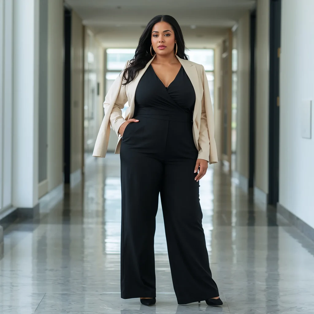 Can we talk about how jumpsuits have become the ultimate power move for curvy professionals? One piece, zero matching required, maximum impact. It’s basically the superhero costume of business casual.