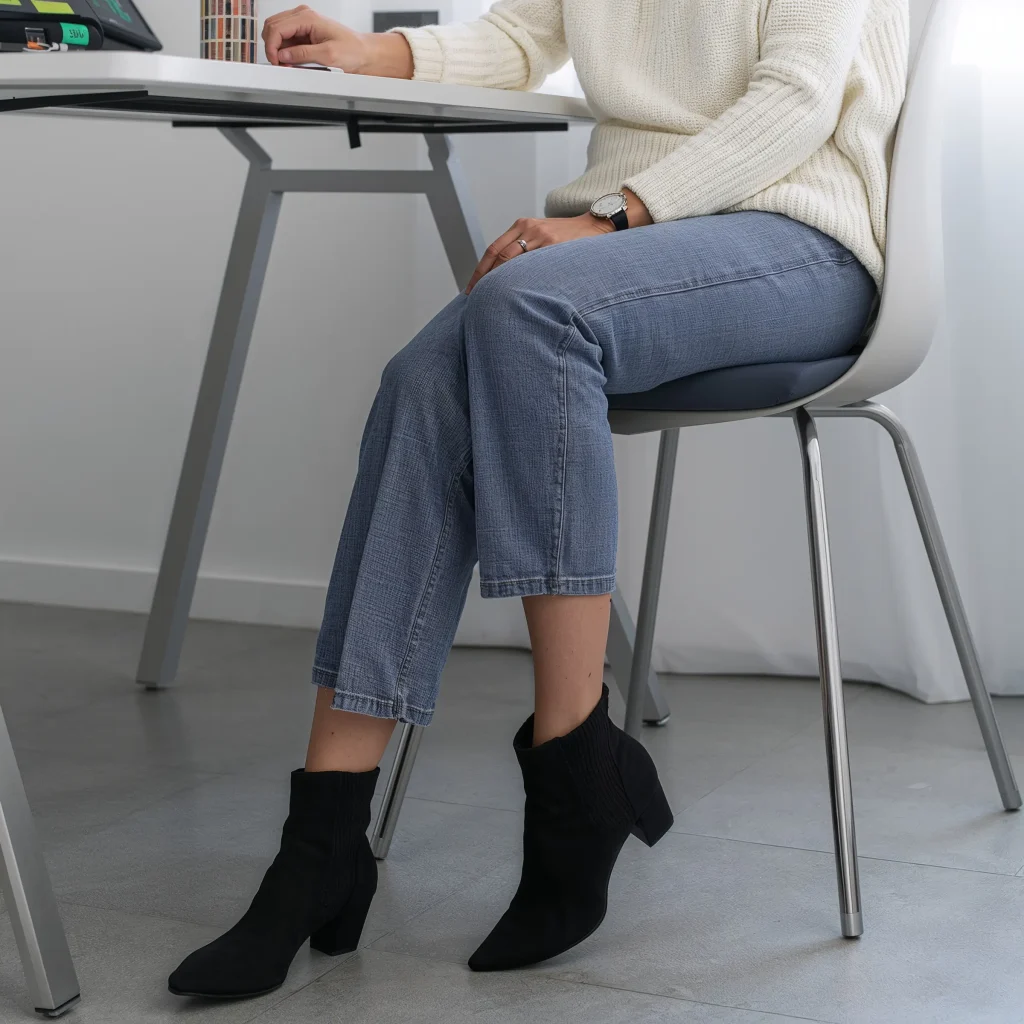 Ankle boots ground the outfit and add a touch of edge. Choose a heel height that works for your daily activities – comfort is key when you’re running between meetings.