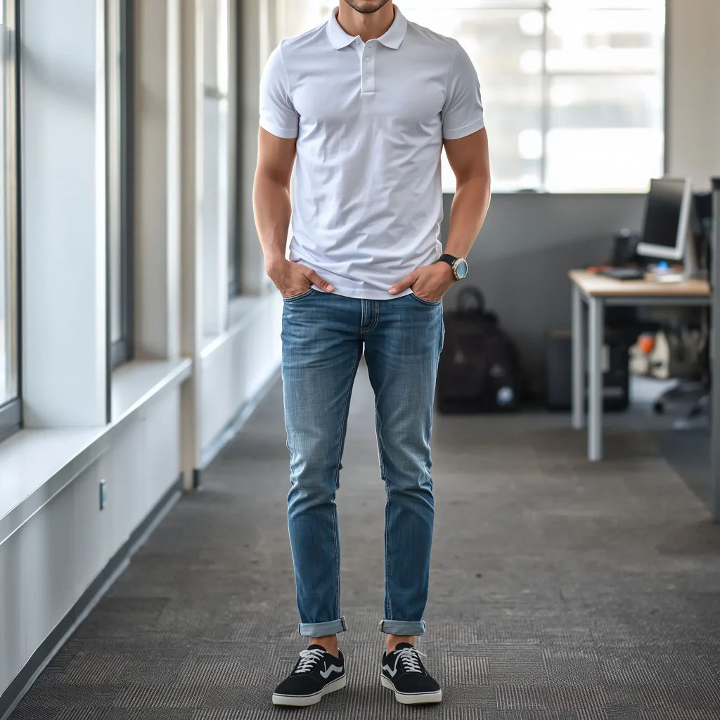 Polo shirts have shed their country club image and become surprisingly versatile. When you pair them with the right jeans, you get this smart-casual vibe that’s perfect for end-of-week office days.