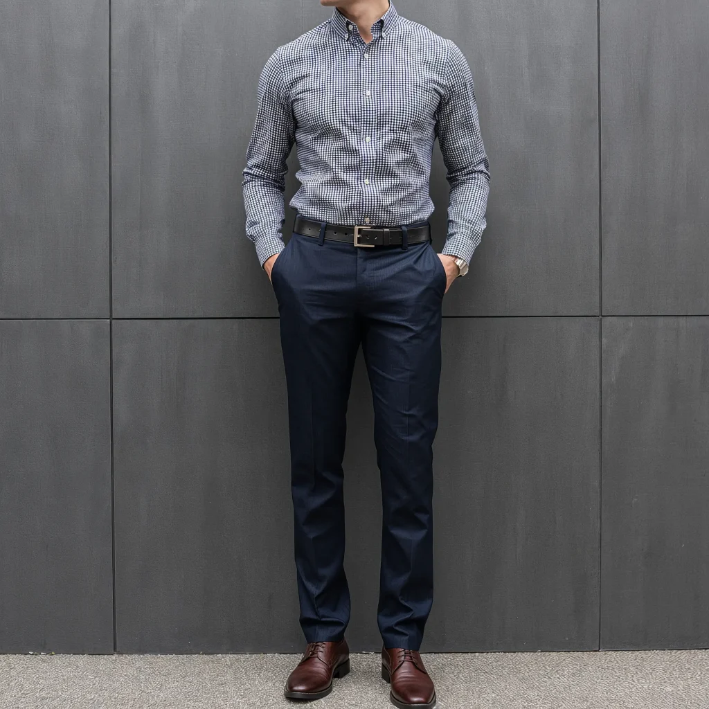 The key is choosing patterns that work for your office environment. Subtle stripes or micro-prints work for conservative offices, while bolder patterns fly in creative spaces. Make sure the shirt fits well – not too tight, not too loose.