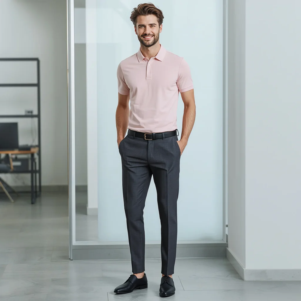 The key is choosing quality polos in solid colors – skip the giant logos unless you’re actually sponsored by Ralph Lauren. Navy, black, white, and burgundy are foolproof choices. Pair these with well-fitted dress pants in grey or khaki, and suddenly you’re business casual gold.