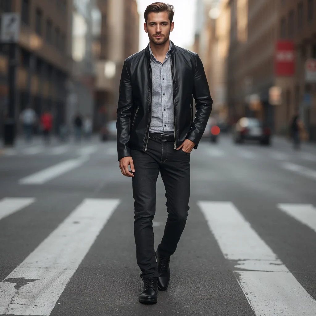 Who says leather jackets are just for motorcycles and rock concerts? A quality leather jacket paired with dark, well-fitted jeans creates an edgy business casual look that’s perfect for creative environments.