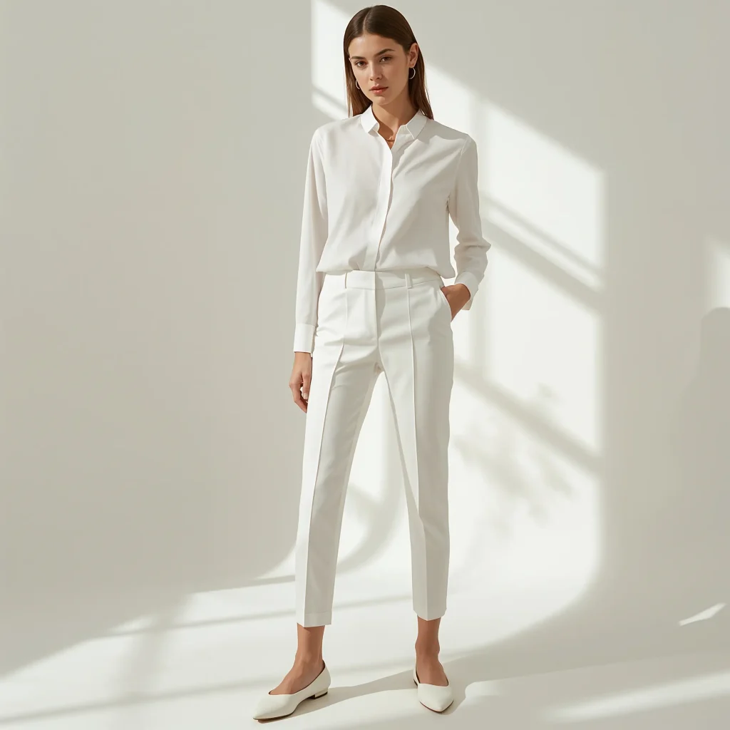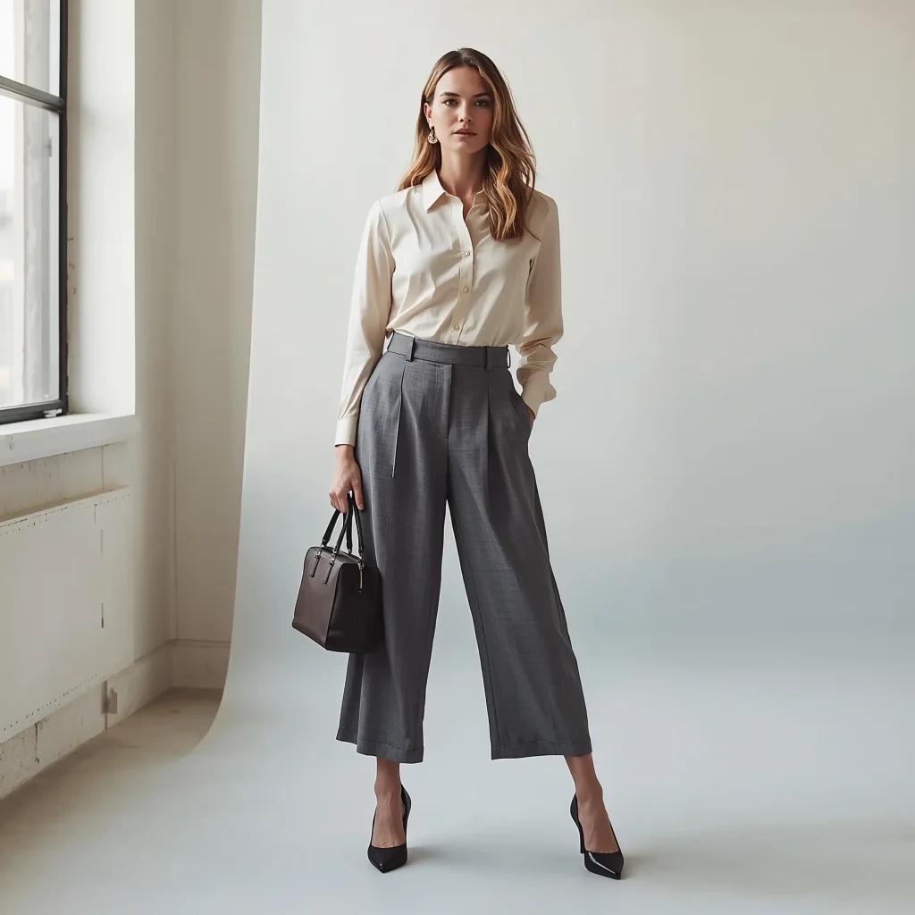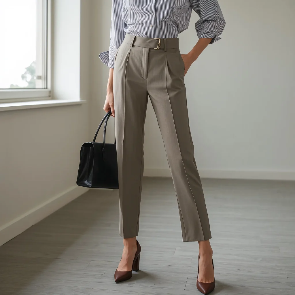 My favorite combo? High-waisted trousers with a silk blouse doing a French tuck. Add pointed-toe flats and minimal jewelry, and you’re golden.