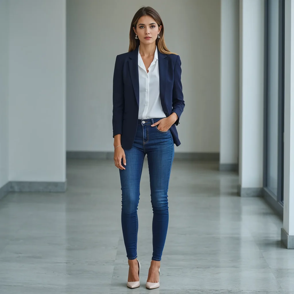 This outfit combo literally saved my career confidence when I started my first real job. The blazer and jeans pairing strikes that perfect balance between “I mean business” and “I’m approachable.”