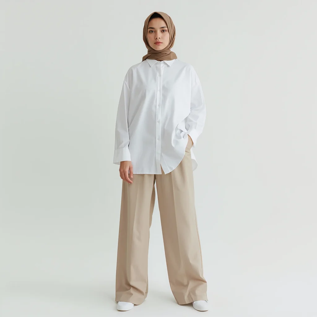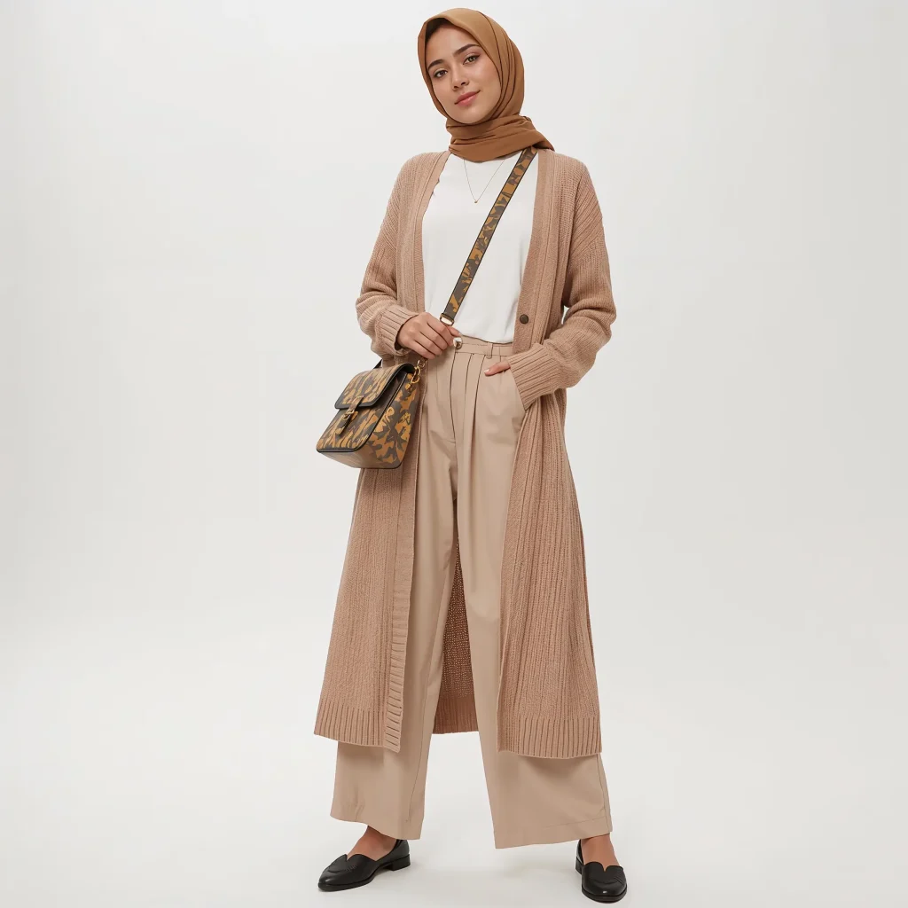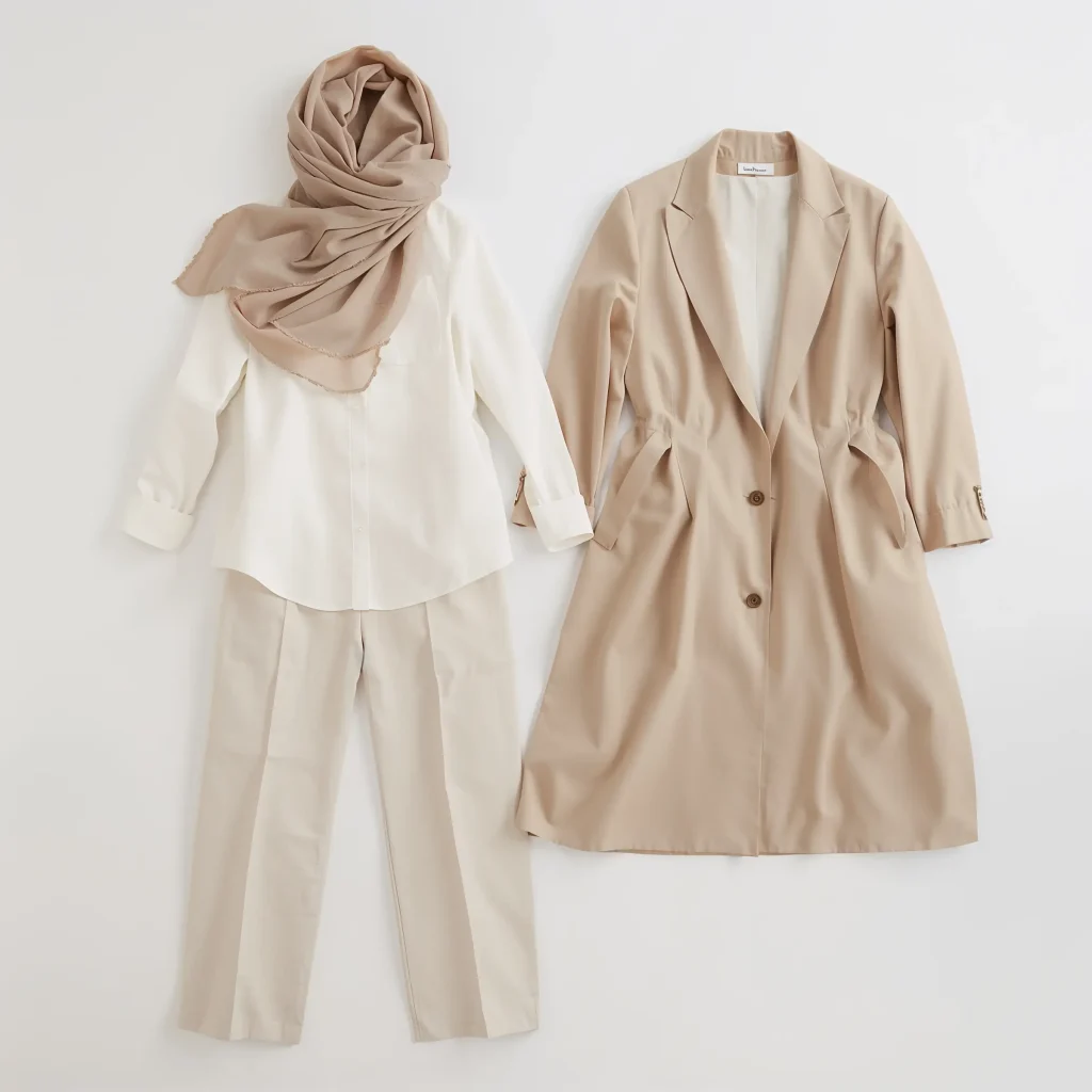 Neutral tones work like magic for modest dressing. They create this expensive, minimalist aesthetic that photographs beautifully and never goes out of style. Plus, everything matches everything, which means getting dressed takes approximately two seconds.