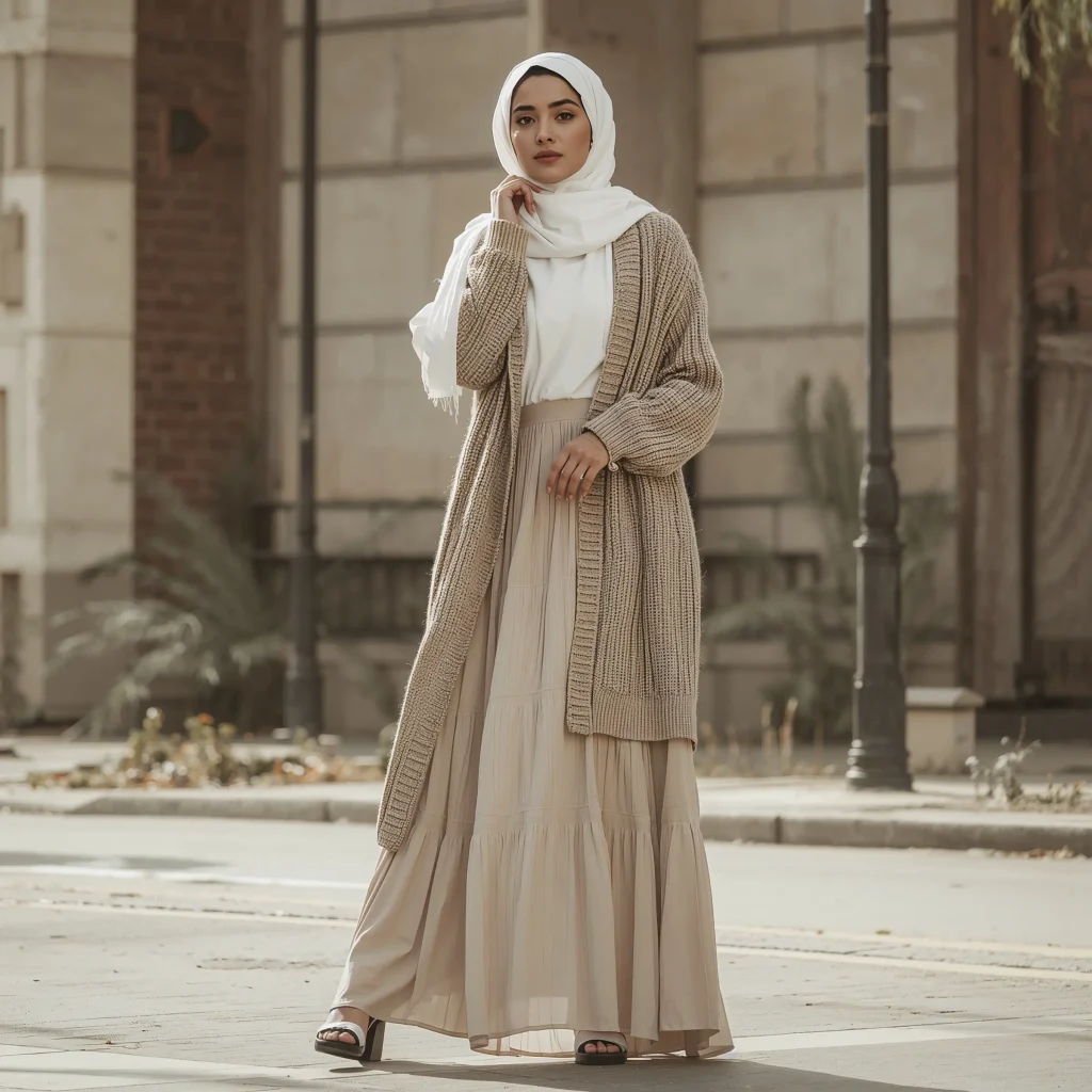 Layering isn’t just practical – it’s an art form that makes modest dressing infinitely more interesting. Think of layers as your secret weapon for creating dimension and visual interest.