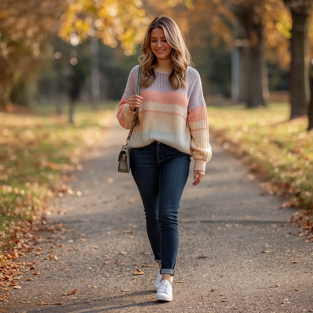 My weekend formula never fails: comfortable bottoms (jeans, joggers, or leggings), a soft top, and a third piece for interest (cardigan, denim jacket, or vest). Add comfortable shoes and a crossbody bag, and you’re ready for whatever Saturday throws at you.