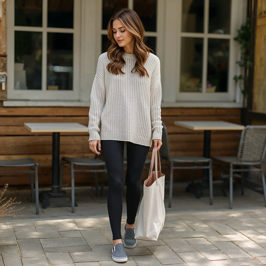 The trick to nailing sporty luxe is making your athletic pieces look intentional, not like you just rolled out of yoga class (even if you did). Pair those high-quality leggings with an oversized cashmere sweater and leather jacket. Add some sleek sunglasses and minimalist jewelry, and suddenly you’re not lazy – you’re fashion-forward.