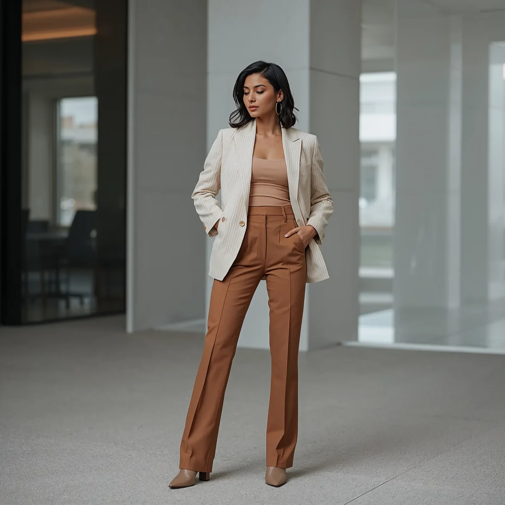 Pair tailored trousers with equally polished tops. A silk blouse tucked in looks instantly elegant. Or try a fitted knit sweater for a more relaxed but still sophisticated vibe.