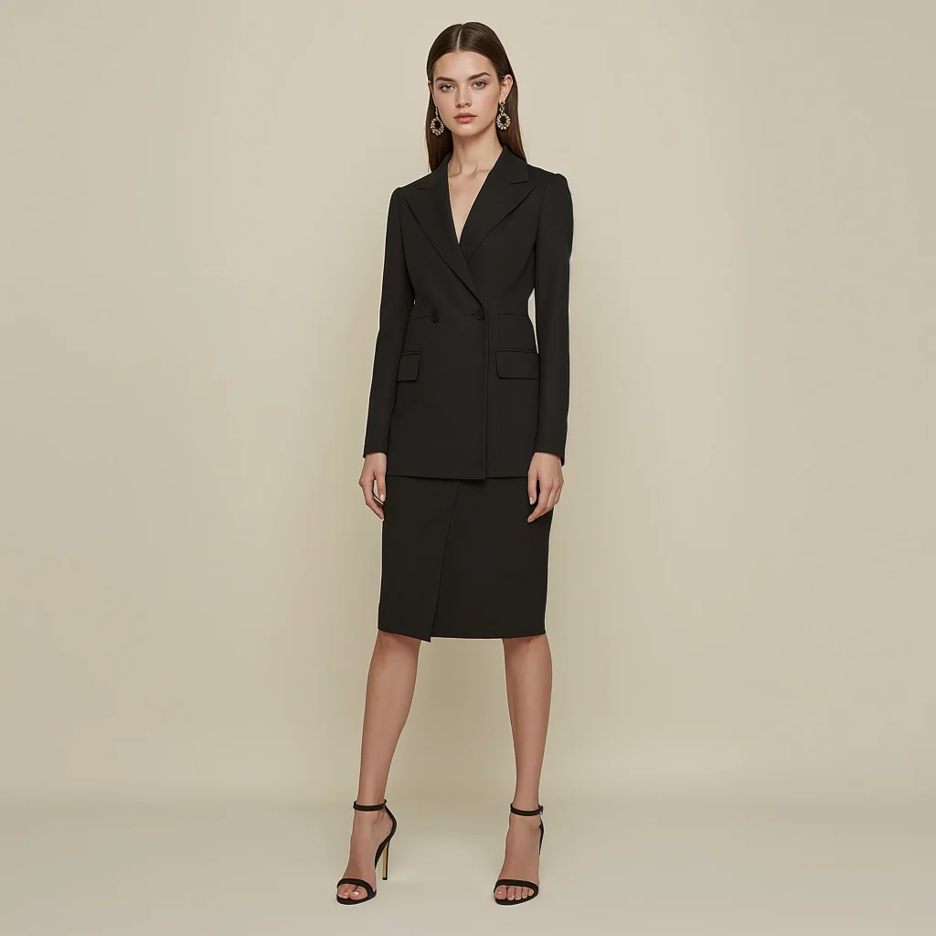 - Well-tailored trousers or a midi skirt