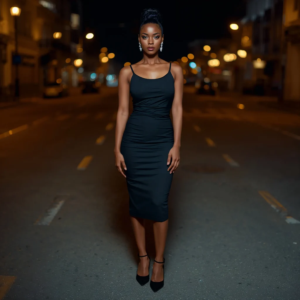 Gold accessories are non-negotiable here. Think chunky gold hoops, a delicate chain belt to cinch the waist, and strappy gold heels. The warmth of gold against Black skin creates this stunning contrast that photographers dream about.