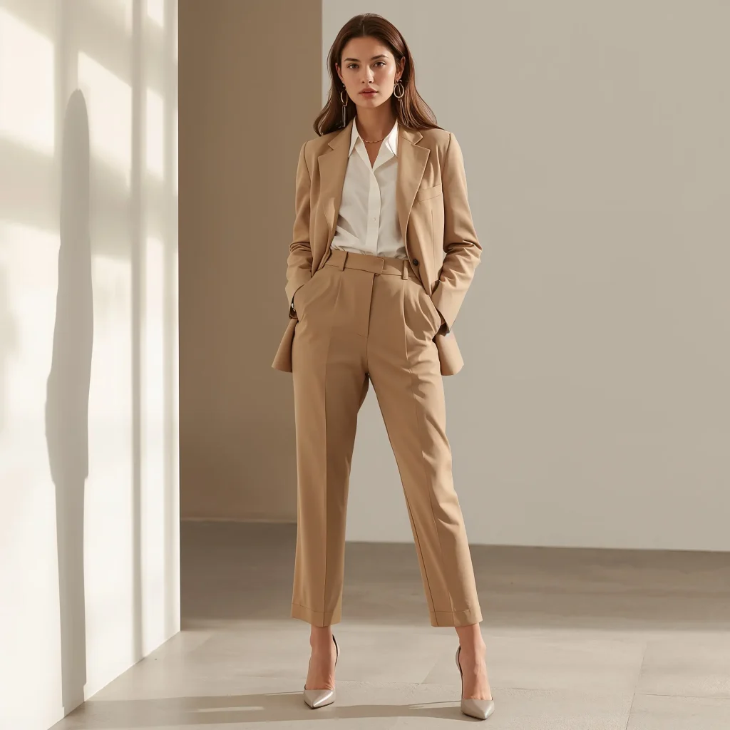 For days when you need extra confidence, go for the power suit—but make it fashion. Choose a suit in an unexpected color like dusty rose or sage green. Wear it with a simple tee instead of a blouse. Add sneakers if your office allows it. You’ll look like you own the company (even if you’re still figuring out the coffee machine).