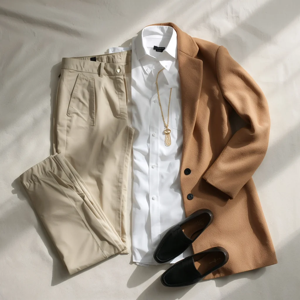 Building a neutral capsule changed my morning routine completely. Everything matches everything. Black, white, beige, cream, camel, navy, and gray become your best friends. Sound boring? Think again.