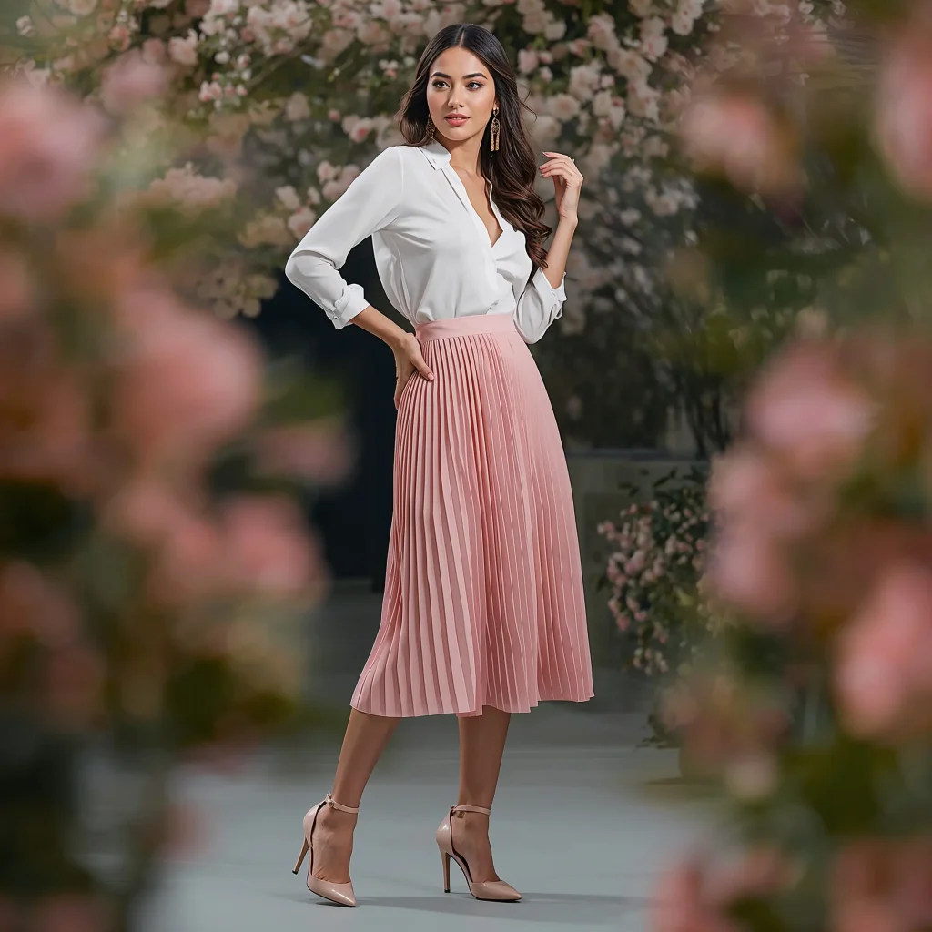 I love starting with a pleated midi skirt in a soft fabric like chiffon or silk. Pair it with a fitted cashmere sweater or delicate blouse. Add ballet flats or kitten heels and delicate jewelry. The result? Timeless femininity that feels modern, not costume-y.