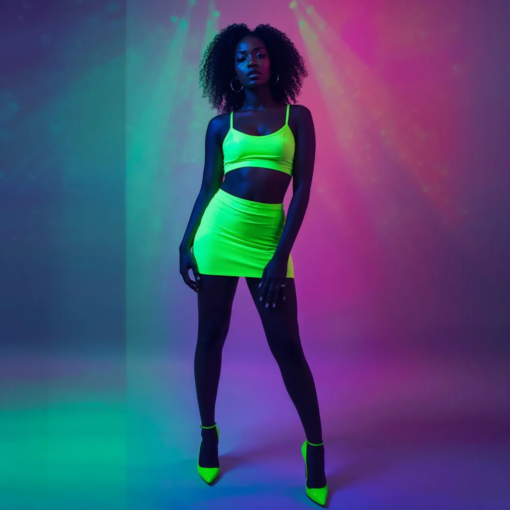 The trick with neon is confidence. You can’t half-step in neon – you gotta own it completely. Walk into that club like you’re the human embodiment of a glow stick, because honestly, you are.