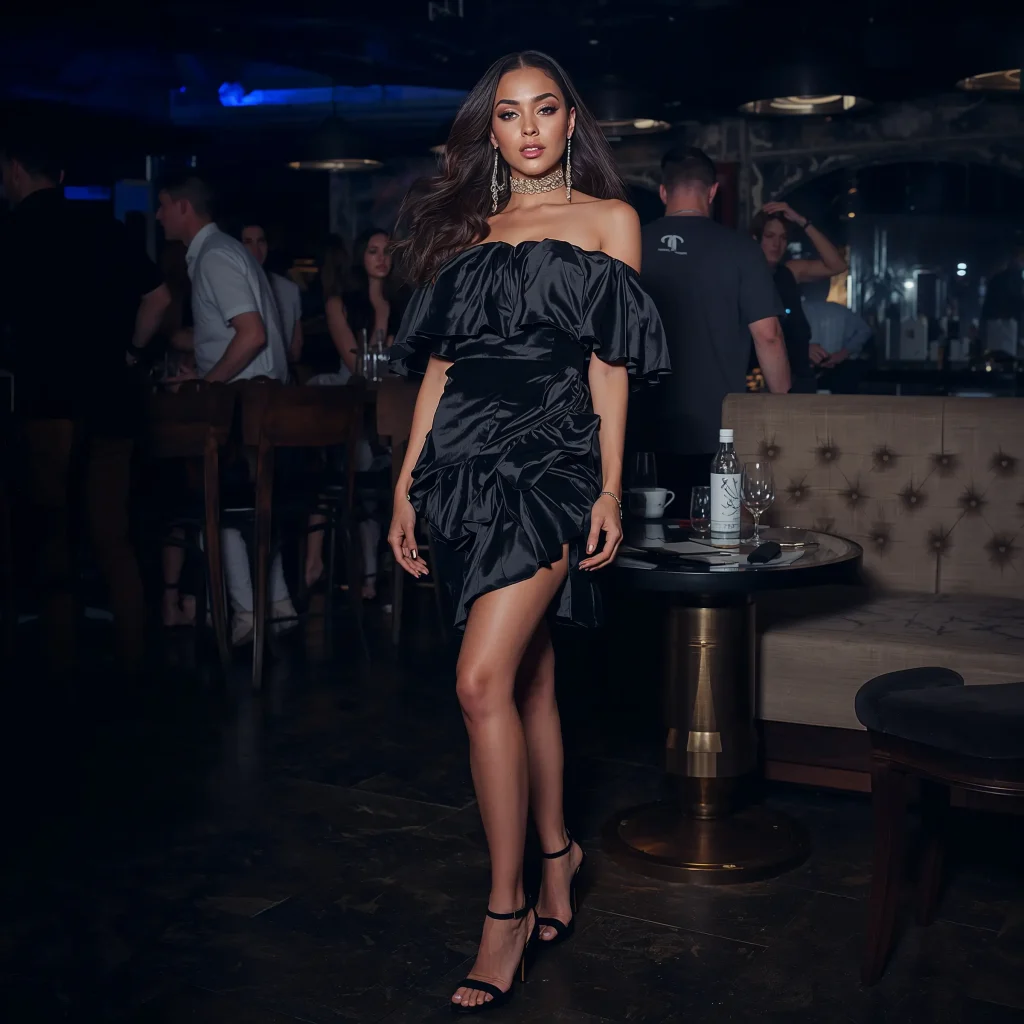 Off-shoulder and ruffled dresses bring romance to nightlife in the best possible way. They’re feminine without being overly sweet, flirty without trying too hard.